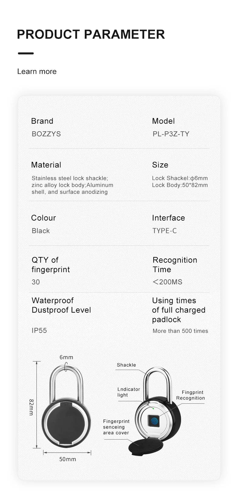 Upgrade your security with the PL-P4 Smart Fingerprint Padlock. This high-tech lock offers fast 0.5-second unlocking using your unique fingerprint – no keys, no codes. Built from premium zinc alloy with an IP55 waterproof rating, it’s perfect for indoor or outdoor use.